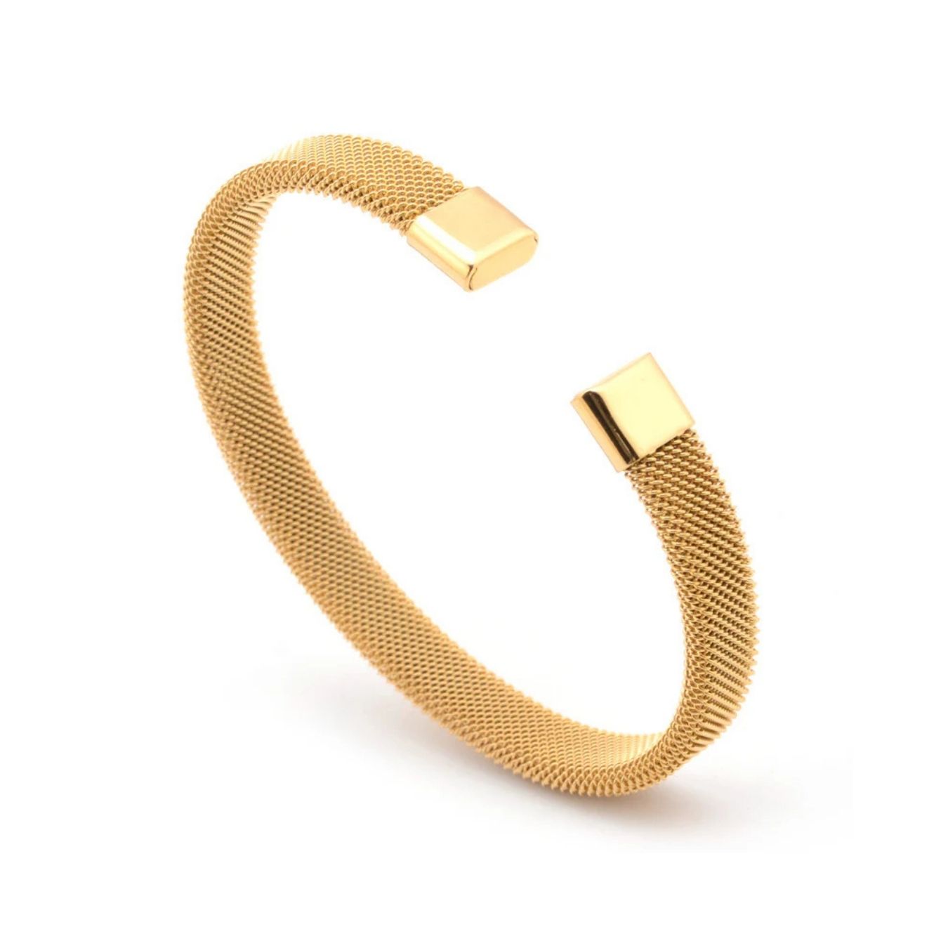 Seine feine Mesh-Optik verleiht dem Armreif Leichtigkeit und Raffinesse, während das robuste Material für Beständigkeit und hohen Tragekomfort sorgt. Durch die offene Form passt er sich elegant dem Handgelenk an und wird so zum idealen Begleiter – ob im Alltag oder zu besonderen Anlässen.