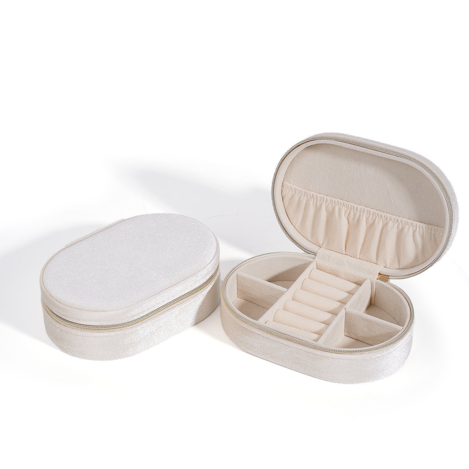 Ovale Schmuckschatulle mit goldenem Reißverschluss –